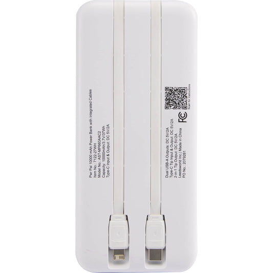 10,000 mAh Power Bank with Integrated Cable