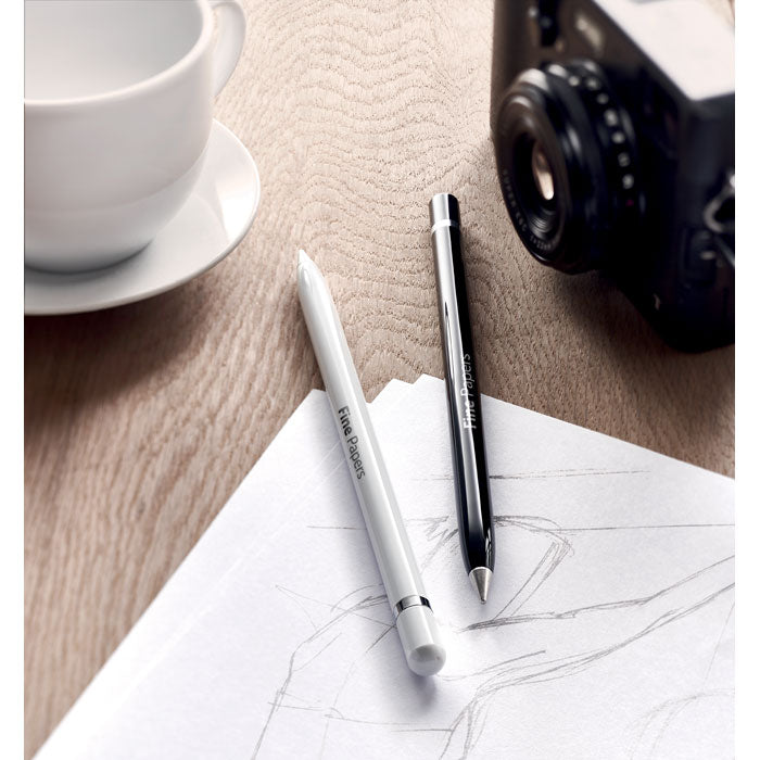 Long lasting aluminium inkless pen. The pen writes with the metal alloy tip.