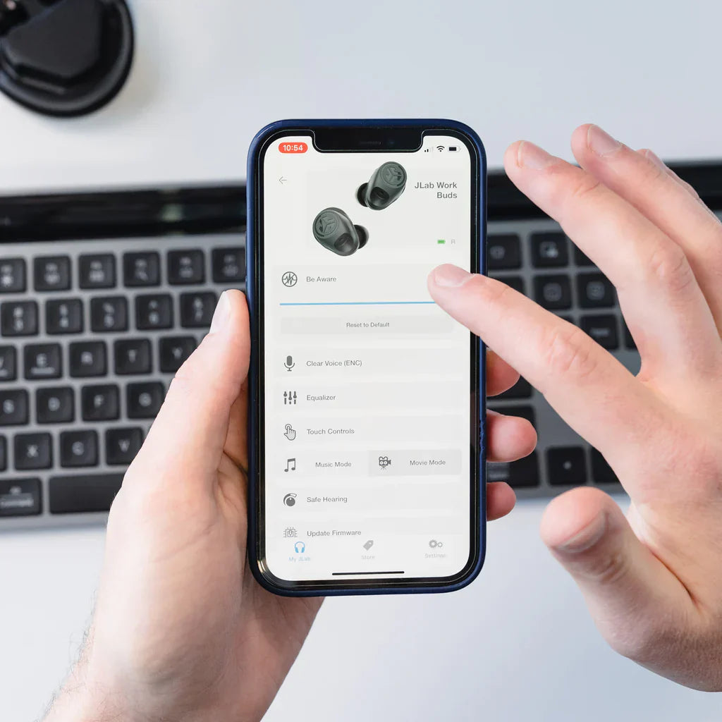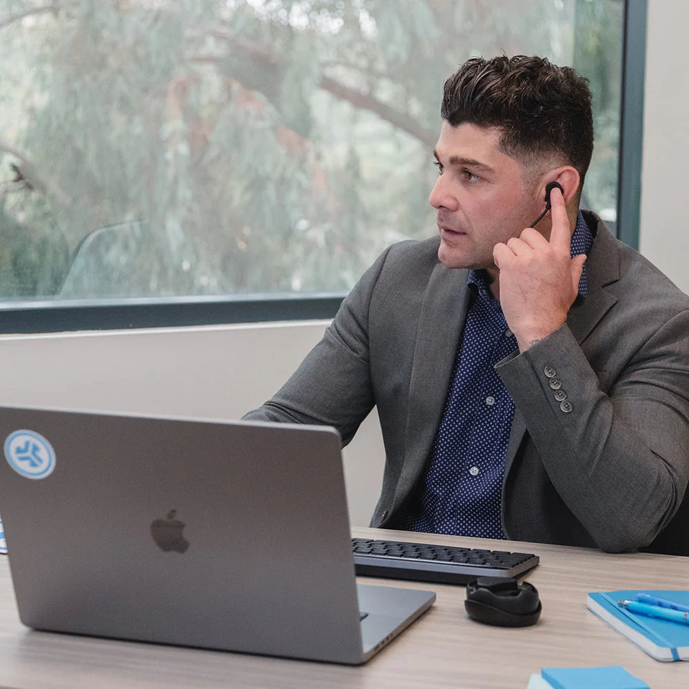 Meet the ultimate solution for the working professional: JLab Work Buds in-ear headset.