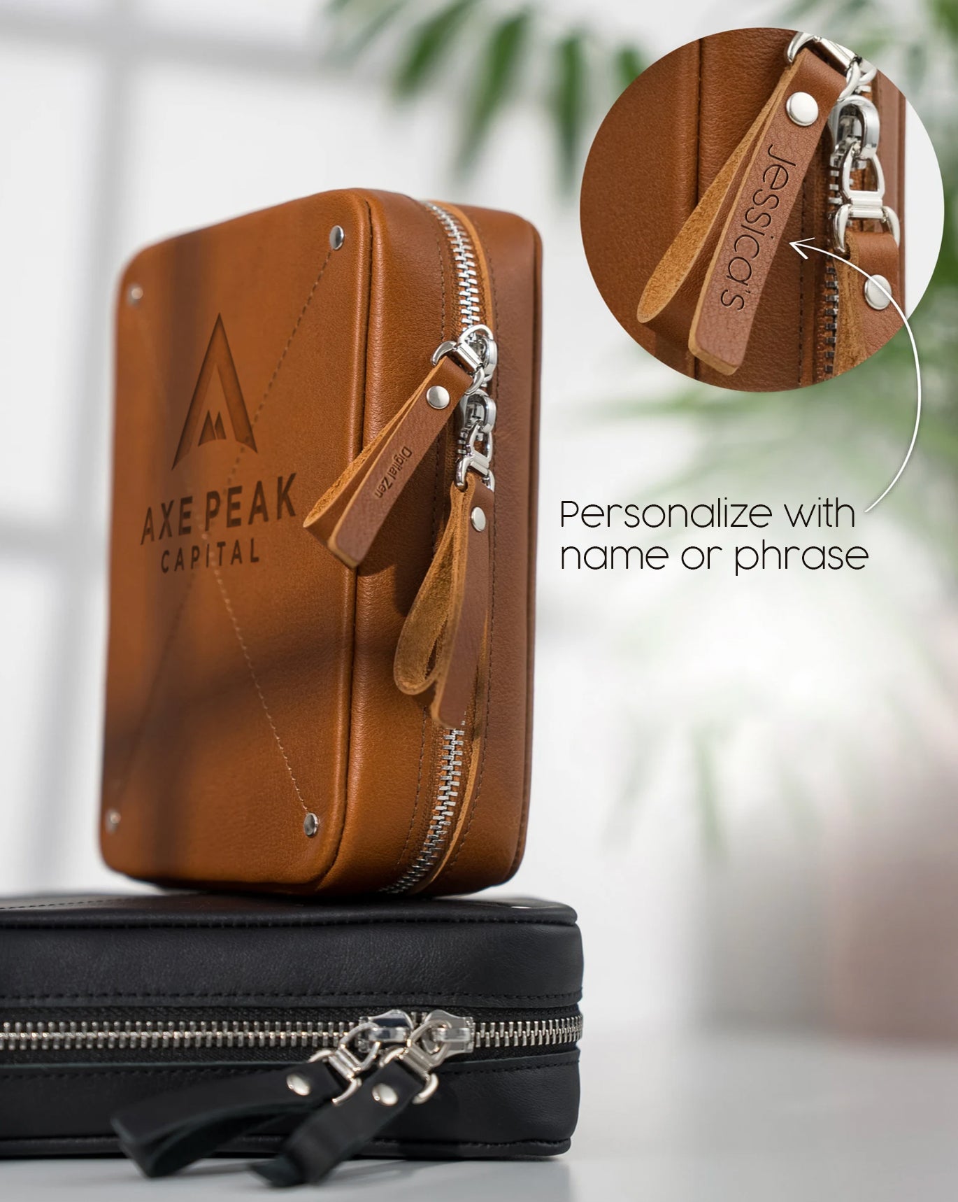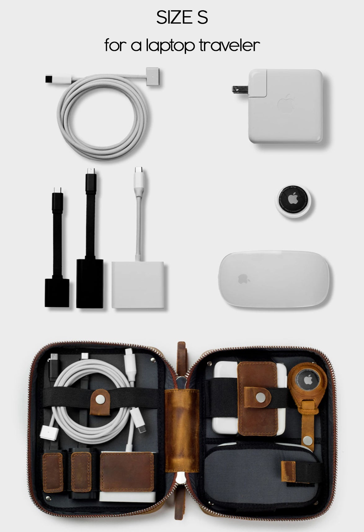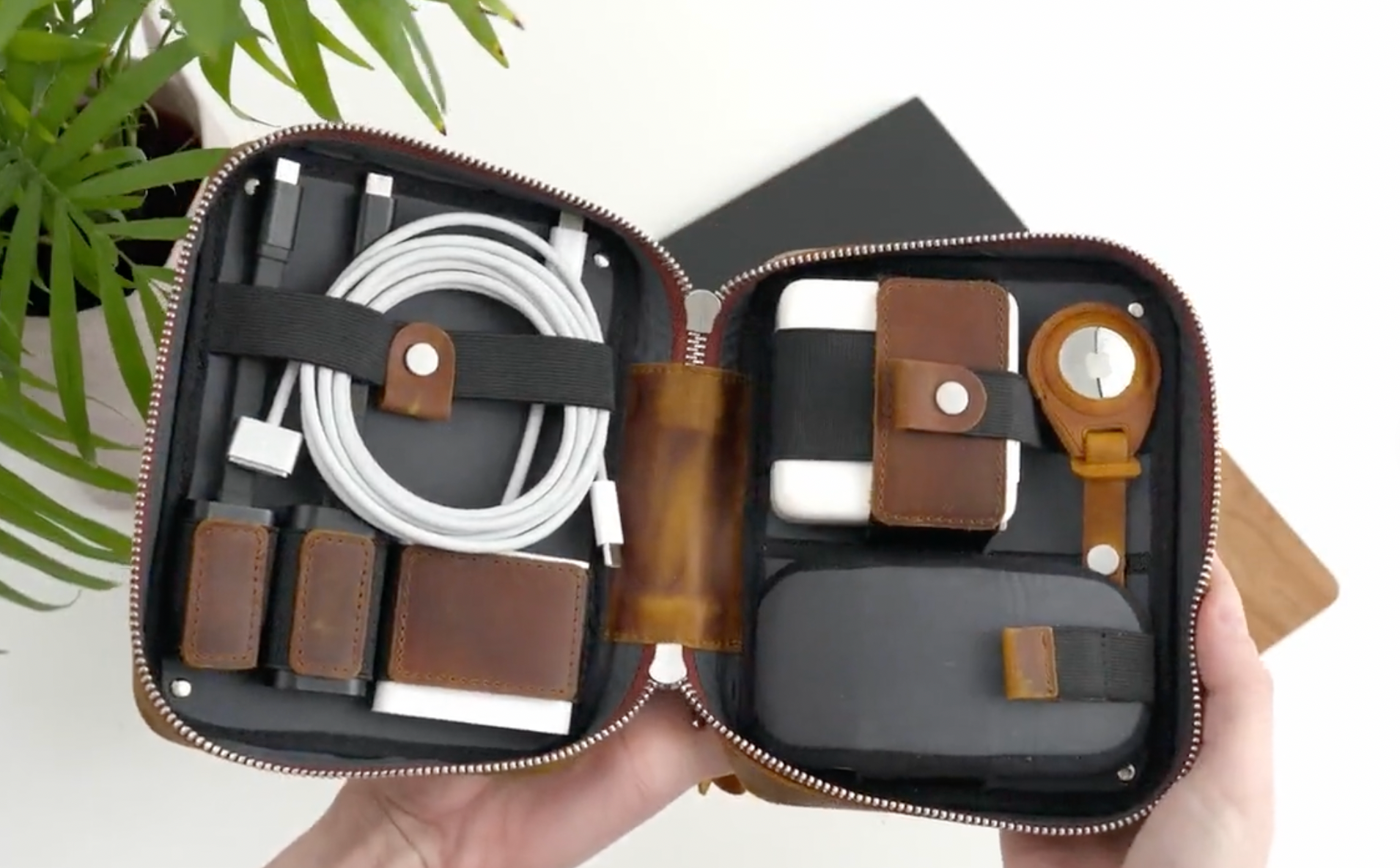 Organize cables and cords in style with this Leather Cable Organizer Bag! Made of genuine leather with classic styling, you'll never have to deal with tangled cords again. The perfect accessory for the fashionable cable wrangler!