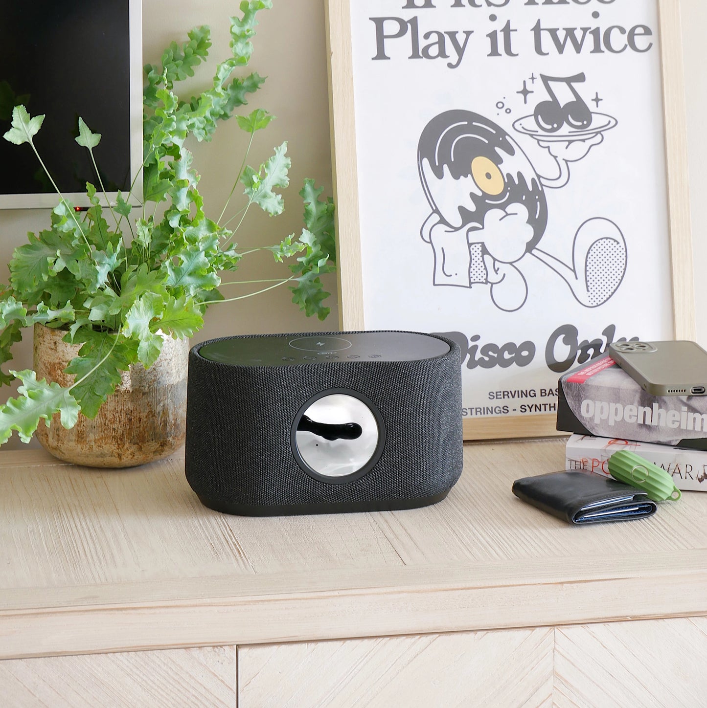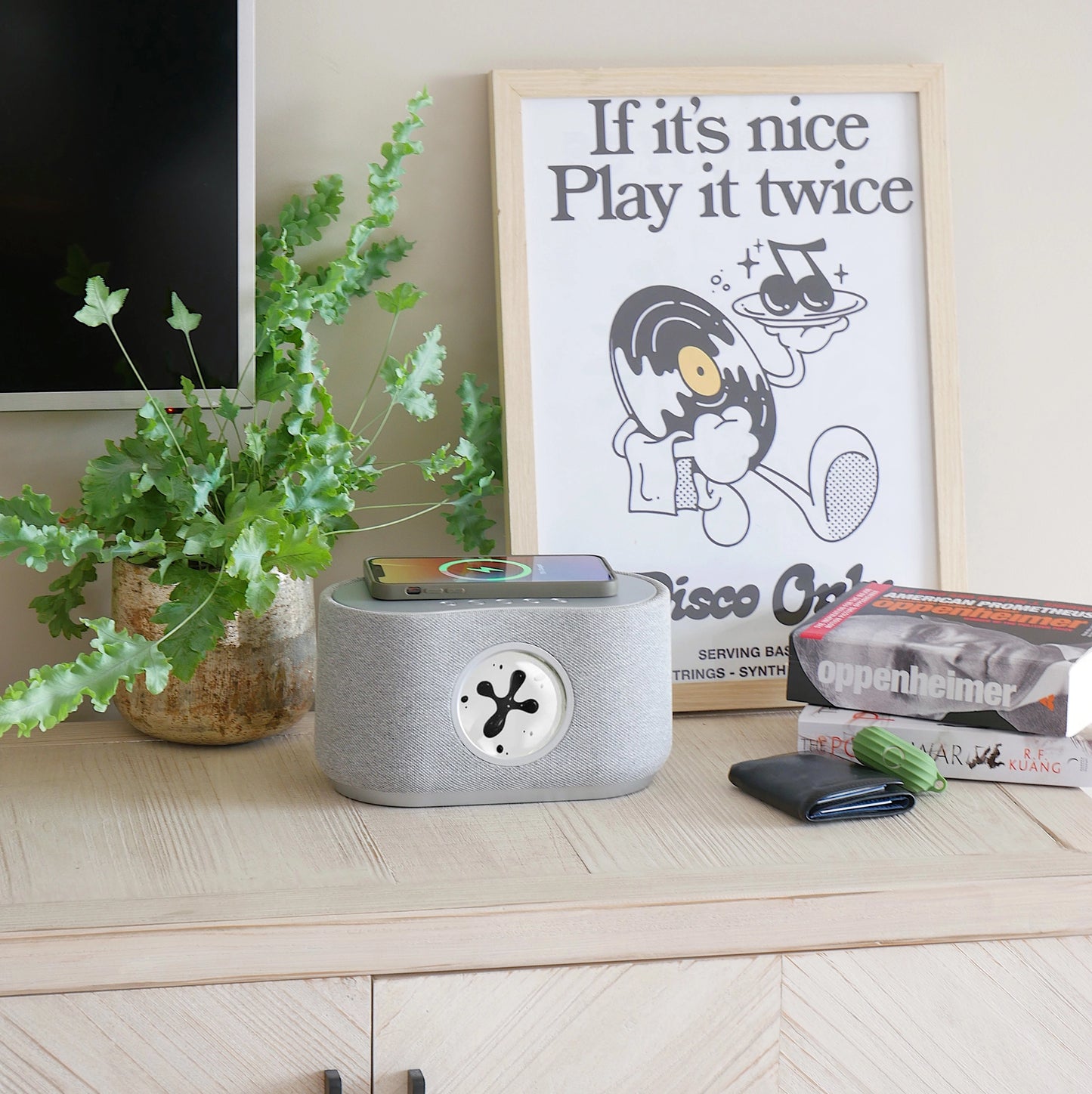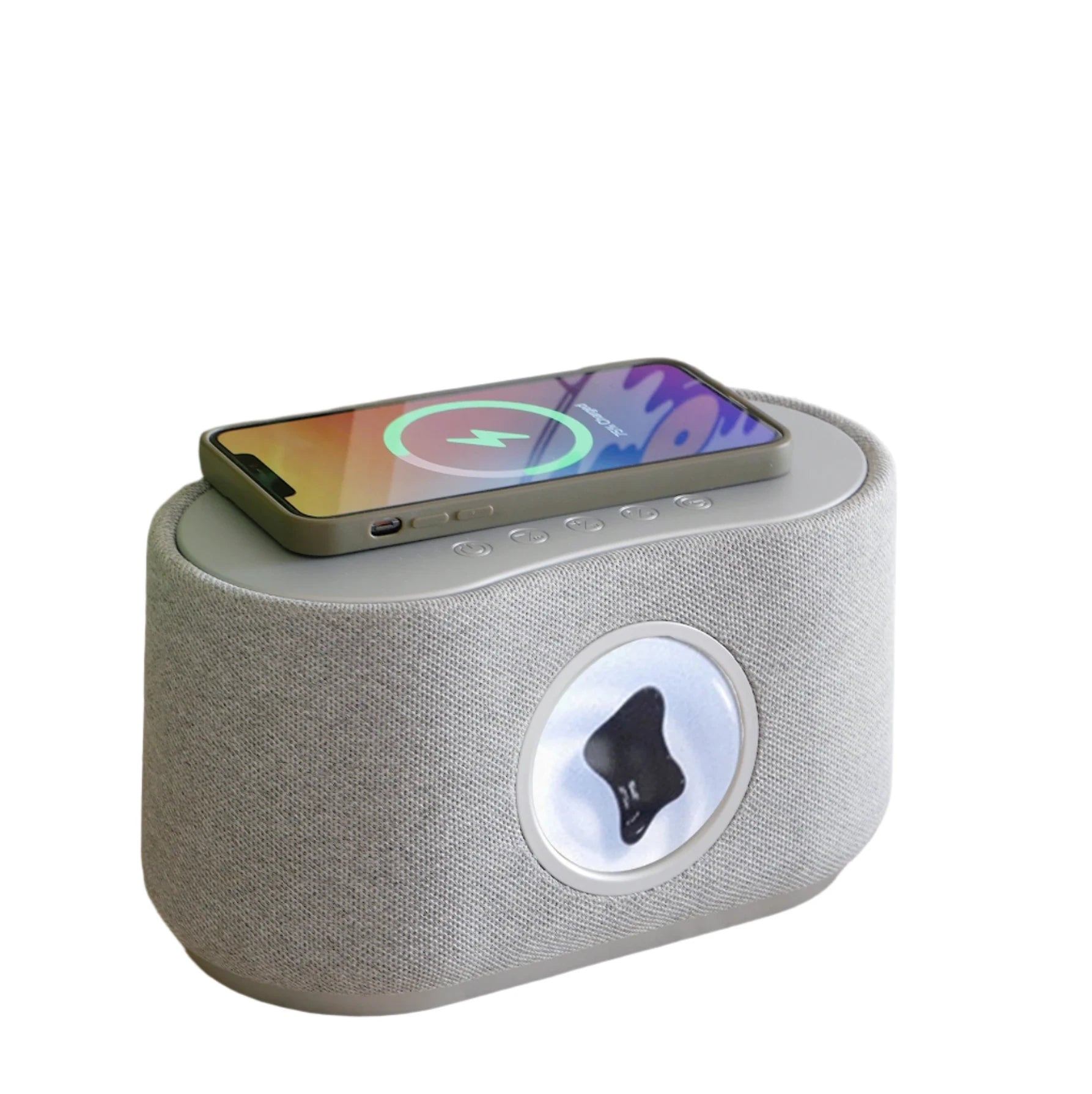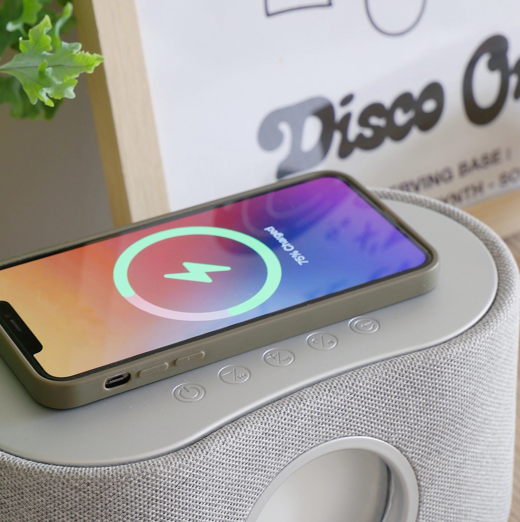 Magna Sound offers seamless Bluetooth connectivity for your favorite music and playlists. With a luxurious fabric finish in light or dark grey, it complements any decor. Enjoy MP3 playback via USB, a 3.5mm jackplug for wired connection, and intuitive touch controls. Plus, it features wireless charging for added convenience.