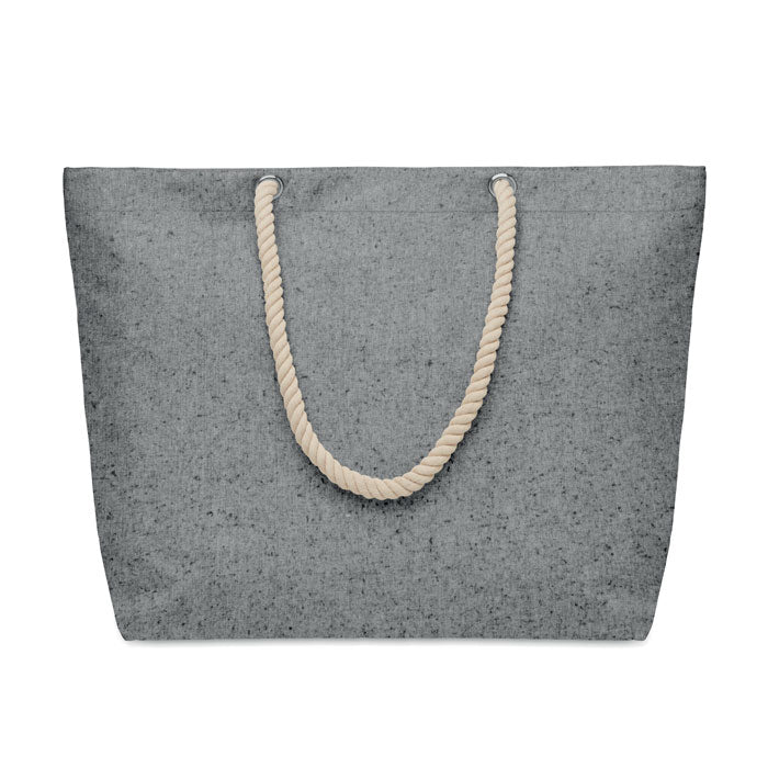 Beach or shopping bag in recycled cotton (80% recycled cotton, 20% regular cotton) with cord handles. 220 gr/m².