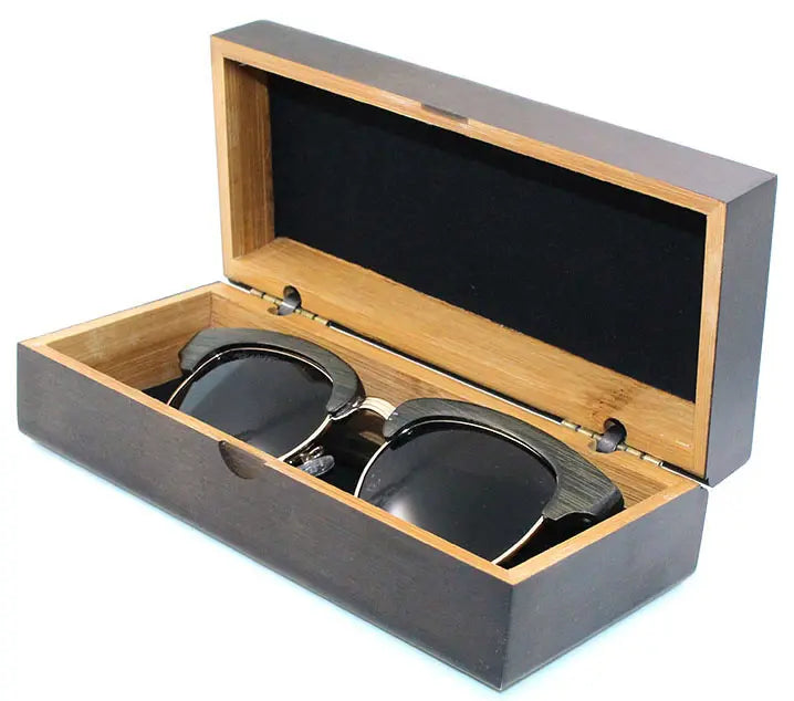 Hinged Bamboo wood sunglasses case. A clever and eco-friendly way to keep your shades safe! Let them make a statement even when they're not on your face.