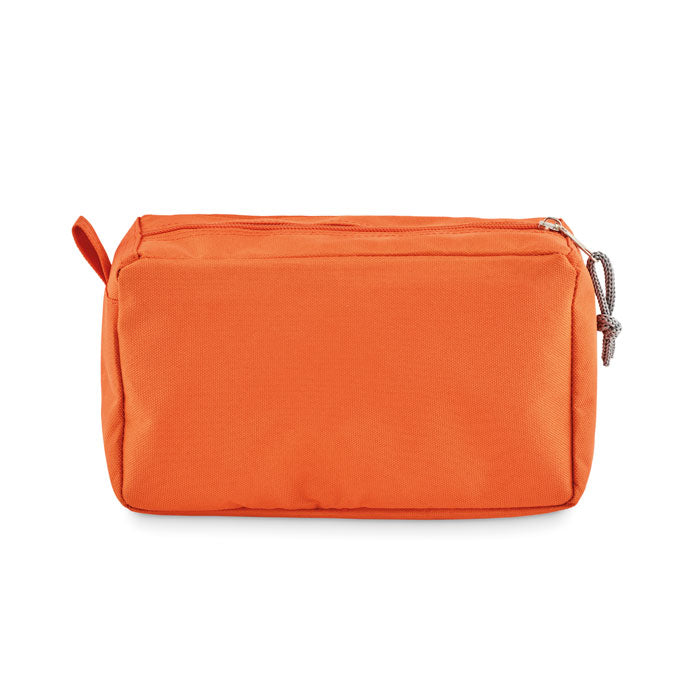 Cosmetic bag with double zipper. 600D polyester with PPE backing.